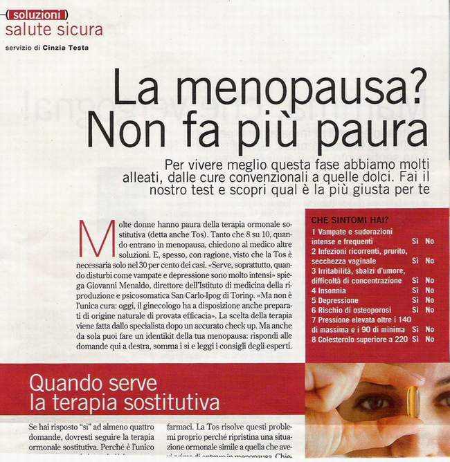 Articolo su Donna Moderna del 8/9/2004: “La menopausa? Non fa più paura”